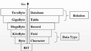 2. โครงสร้างข้อมูลพื้นฐาน ประกอบด้วยแบบของข้อมูลเบื้องต้น คือ 1)บิท(Binary) 2)อักขระ(Character) 3)ฟิลด์(Field) 4)เรคคอร์ด(Record) 5)ไฟล์(File) 6)ฐานข้อมูล(Database) [4]p.12