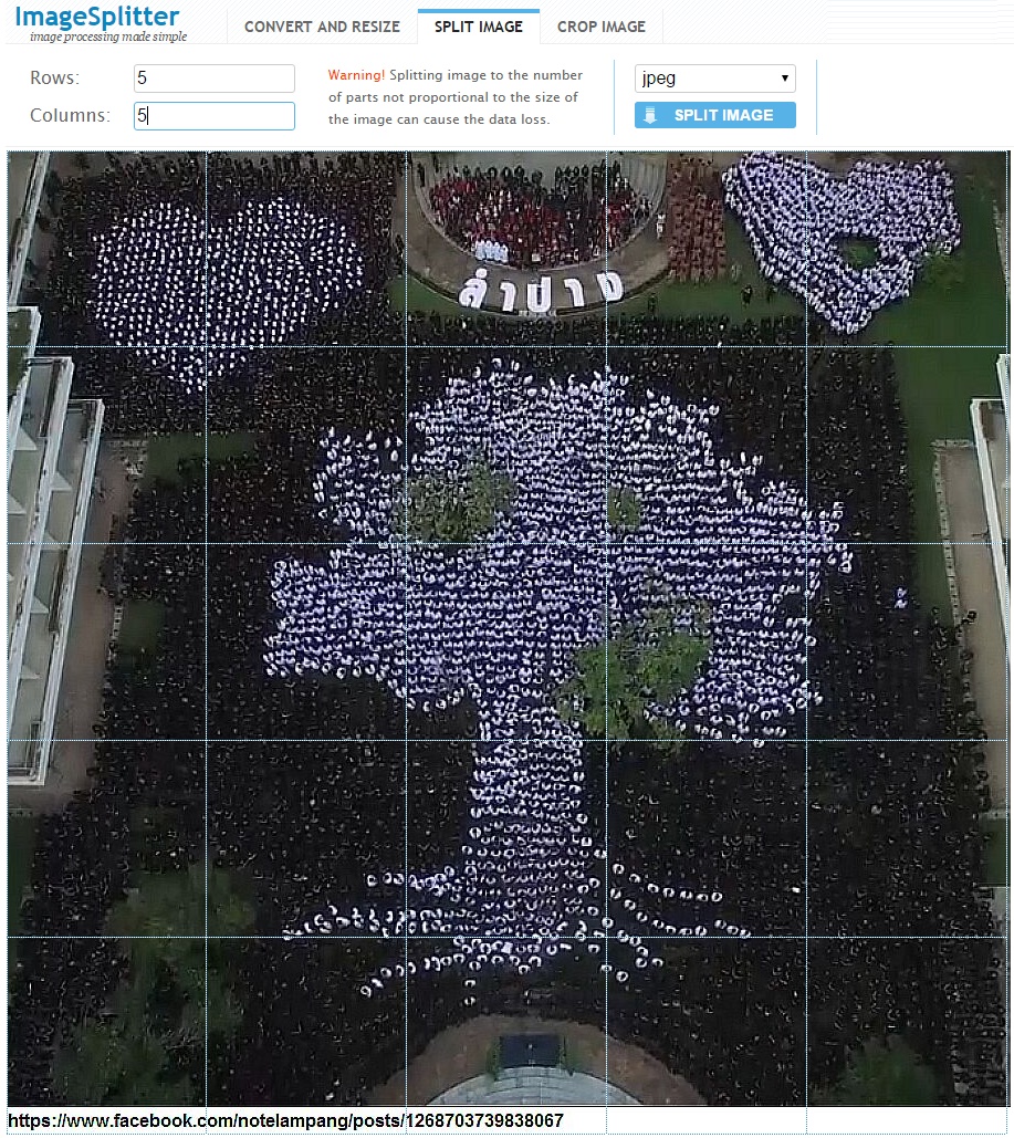 มีนักศึกษาที่เรียนเรื่องโครงสร้างข้อมูล เข้าร่วมกิจกรรมนี้ เพื่อนำเรื่องใกล้ตัวมาเปรียบเทียบกับการจัดการข้อมูล เรื่องการแบ่งช่องแบบแถวลำดับ (อาร์เรย์ = Array) จึงขอใช้ "ภาพต้นไม้ของพ่อ" มาอธิบายเรื่องอาร์เรย์ เริ่มจากการนำไป split ในเว็บไซต์ imagesplitter.net แบ่งเป็น 5 แถว (row) 5 คอลัมน์ (column) จะได้ภาพย่อย 25 ภาพ แต่ละภาพจะมีจำนวนชาวลำปางแตกต่างกัน เมื่อนำมาบันทึกในอาร์เรย์ก็จะได้อาร์เรย์มิติเดียวมี 25 สมาชิก และเรียงภาพจาก 00.jpg ไปถึง 44.jpg ค่าแต่ละสมาชิกก็จะได้จากการนับจำนวนชาวลำปางในภาพ นับโดยประมาณได้ 100,080 คน